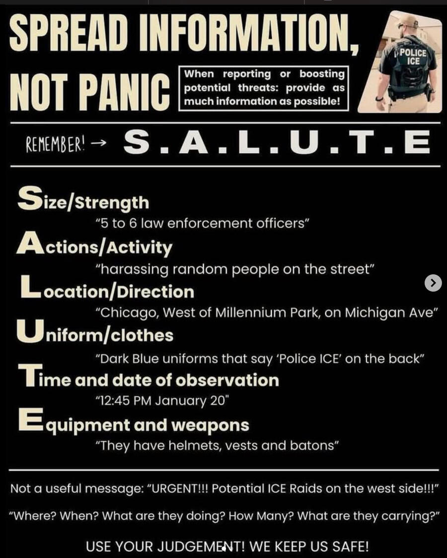 Do NOT report unless verified. Do not react in fear. Stand firm in knowledge and make sure to follow SALUTE.
