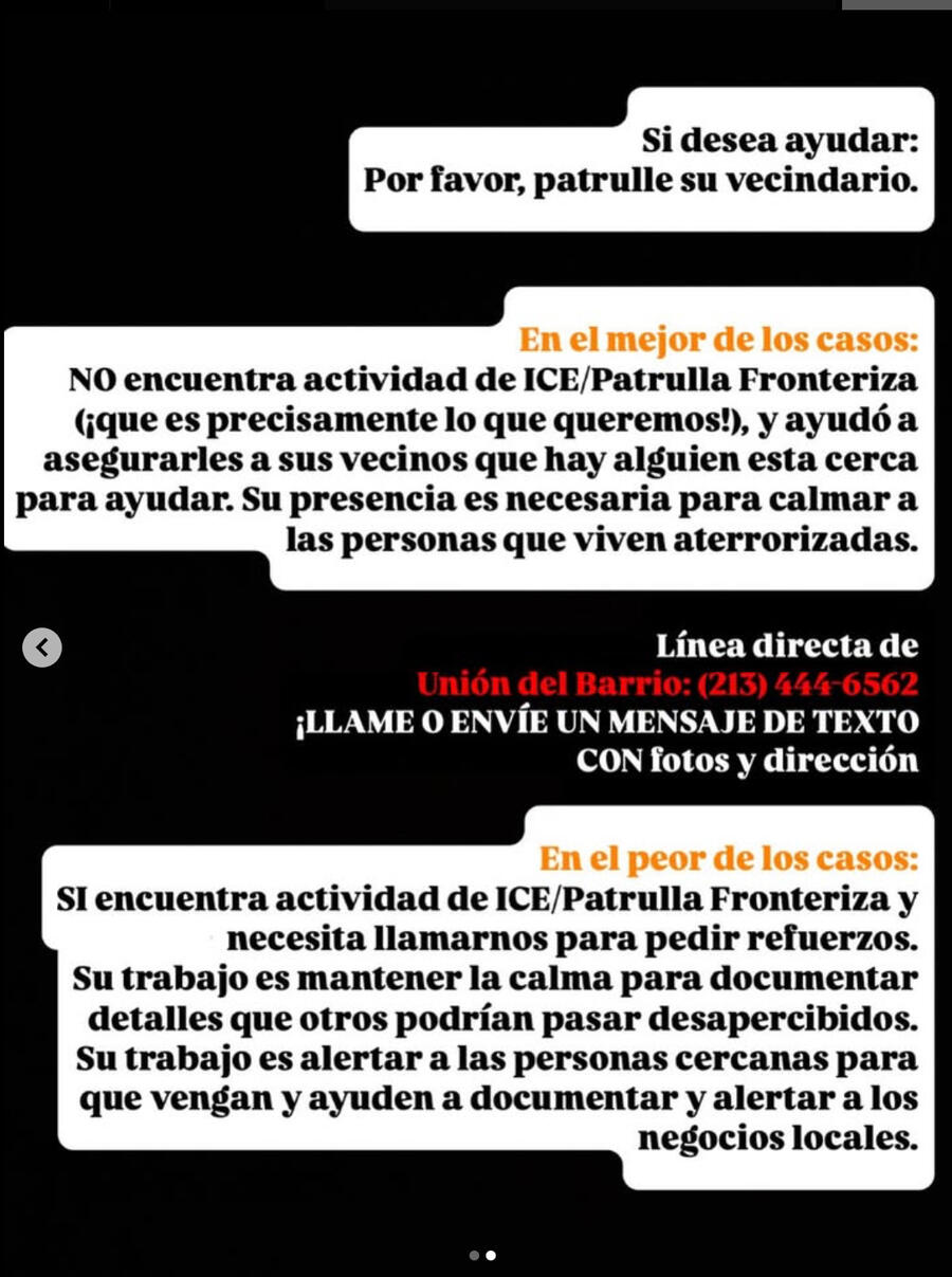 +1 (213) 444-6562Remember: do not say ICE is in the area and leave. Support community and stay to ensure everyone is safe and so that you can report that ICE is actually in the area.